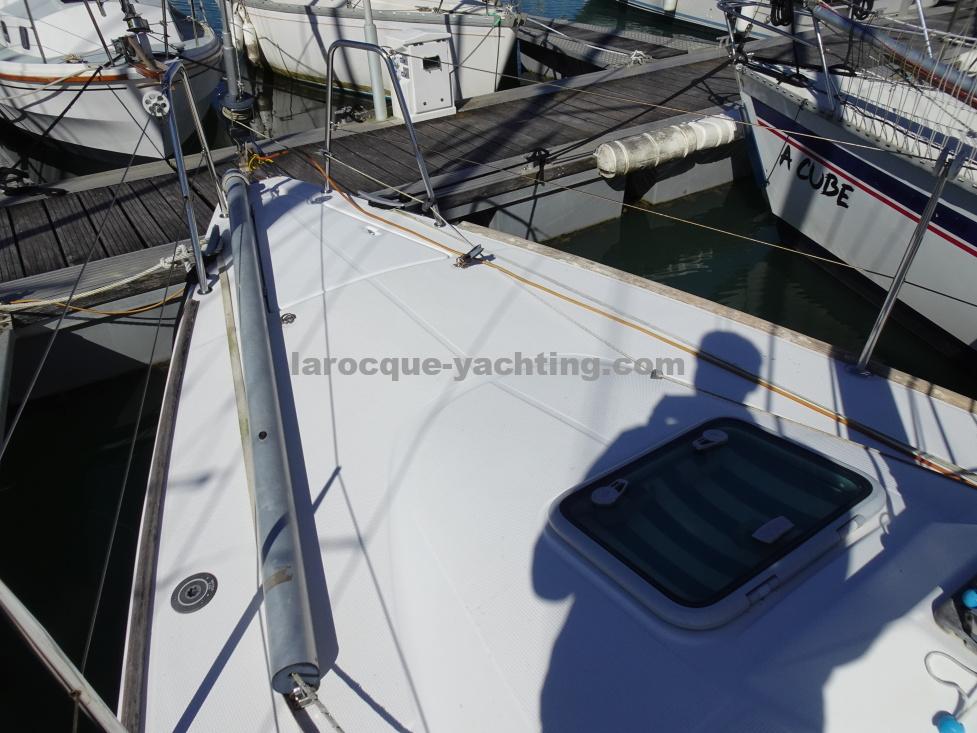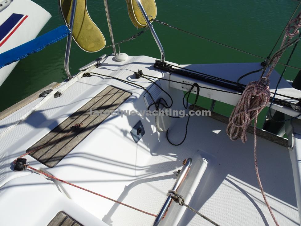 FIRST 27.7 QR. Moteur Yanmar de 18 cv, comptant 465 heures de fonctionnement. Tirant d’eau 0.65 m / 2.20 m. Vérin hydraulique pour le relevage de la quille. Jeu de béquille pour l’échouage. Capote de roof. Spi asymétrique avec chaussette sur bout dehors. Génois sur enrouleur. Grand-Voile semi lattée. Bateau qui demandera une nouvelle étanchéité au pied de mat. Visible à La Rochelle. Pour plus d’infos, photos ou organiser une visite, contactez-moi sans attendre !