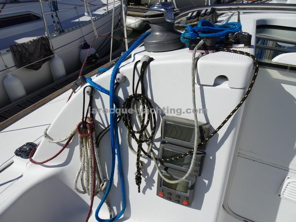 | Rail d'écoute de grand-voile | à arrière du cockpit |