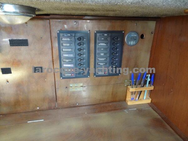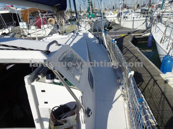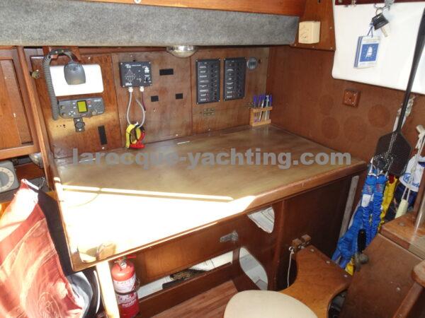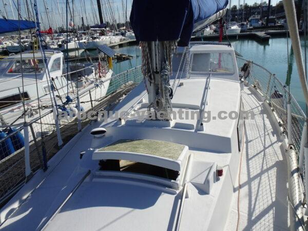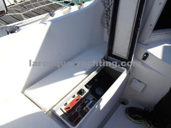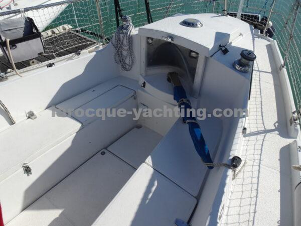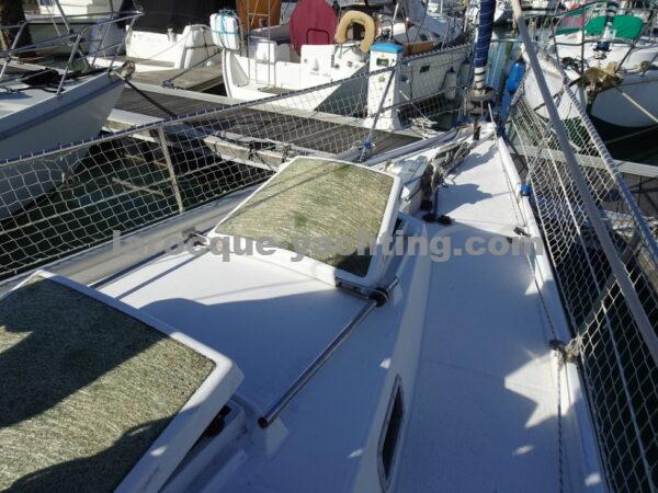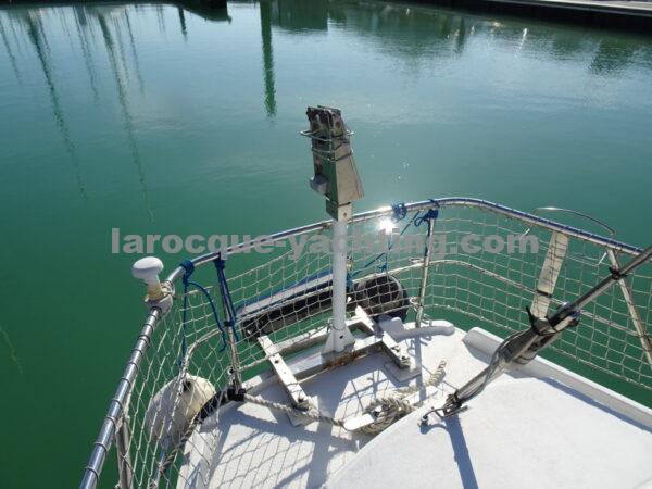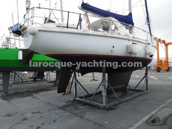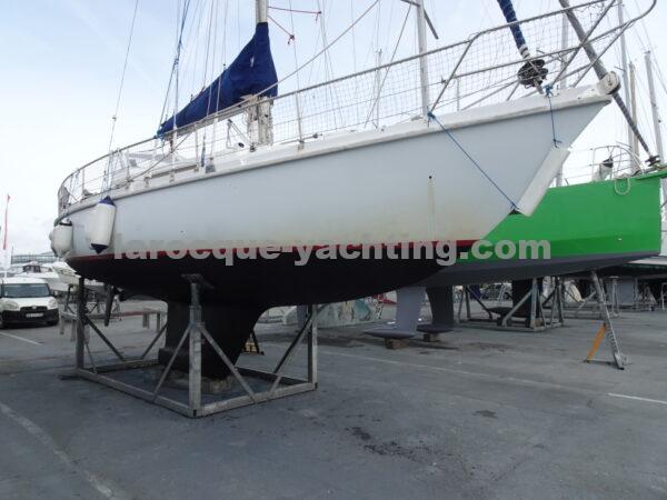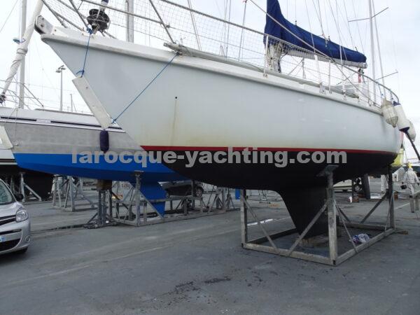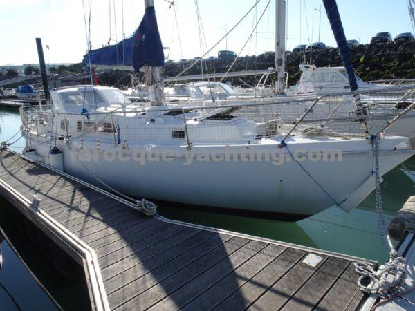 KIRK. Bateau en bon état général. Vaigrages en bon état. Spi symétrique. Génois sur enrouleur. Etai largable. Trinquette, Foc 1. Foc 2. Grand-voile semi lattée. Guindeau électrique. Régulateur d’allure. Moteur Volvo MD2030 de 29 CV comptant 1 854 heures.