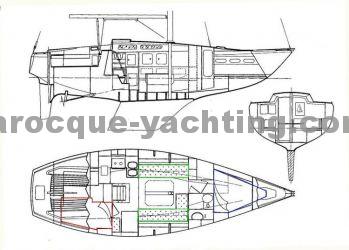MELODY. Bateau en bon état général. Génois sur enrouleur. Grand-voile full batten. Spi symétrique. Moteur Yanmar 2QM25 de 25 CV comptant 2451 heures. Dernier carénage mai 2022. Prêt à naviguer.