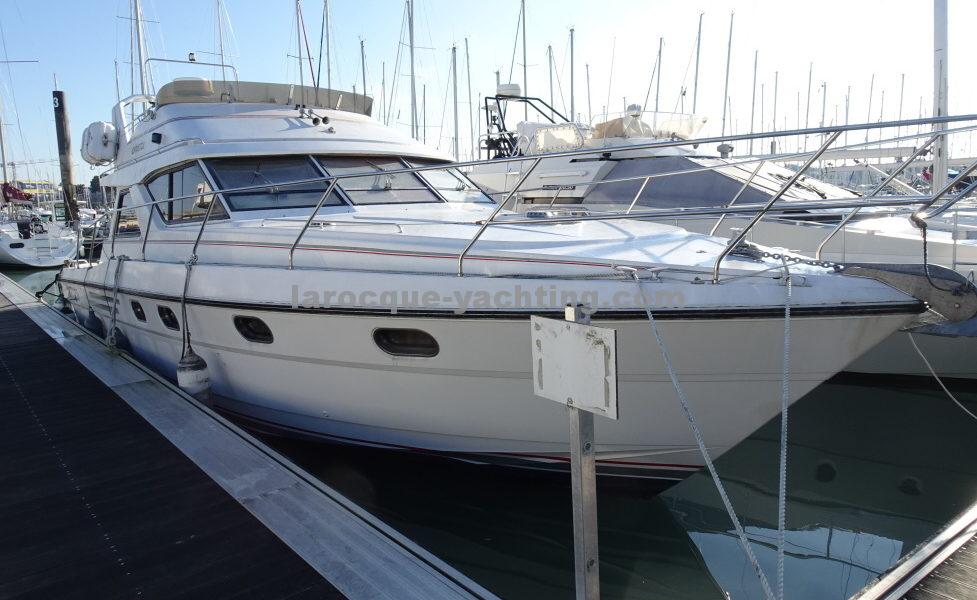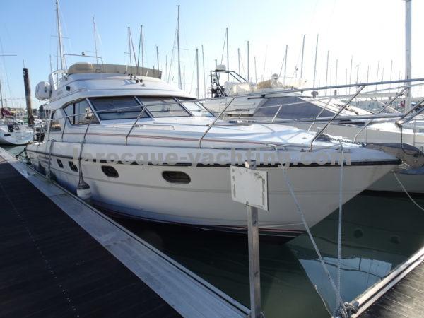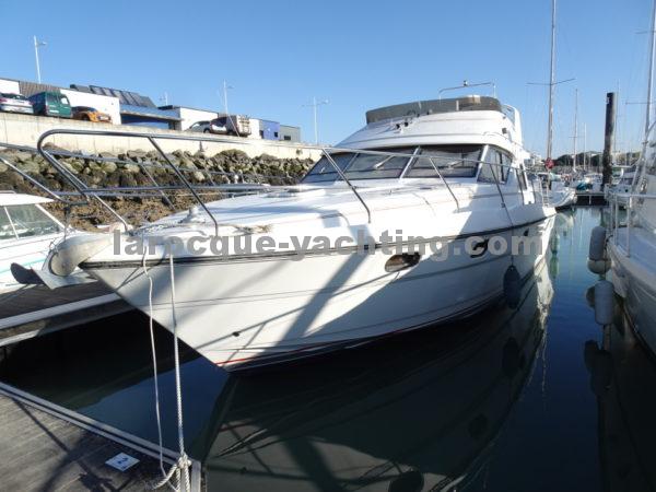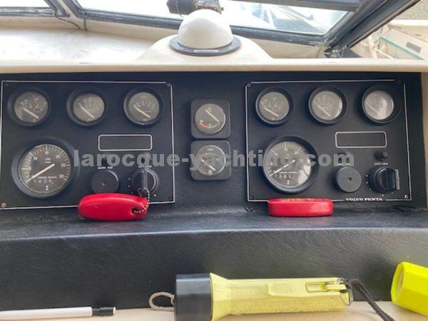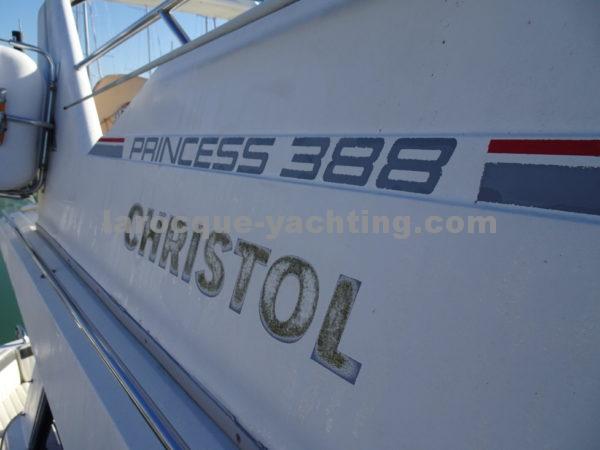 PRINCESS 388. Version 2 cabines doubles, 2 cabinets de toilette. Bimoteur VOLVO TAMD61 de 2*306 CV, comptant 1 436 heures. Passerelle de quai. Paire de bossoirs. Guindeau électrique. Poste de pilotage au fly. Annexe. Moteur hors-bord. Bateau en bon état général