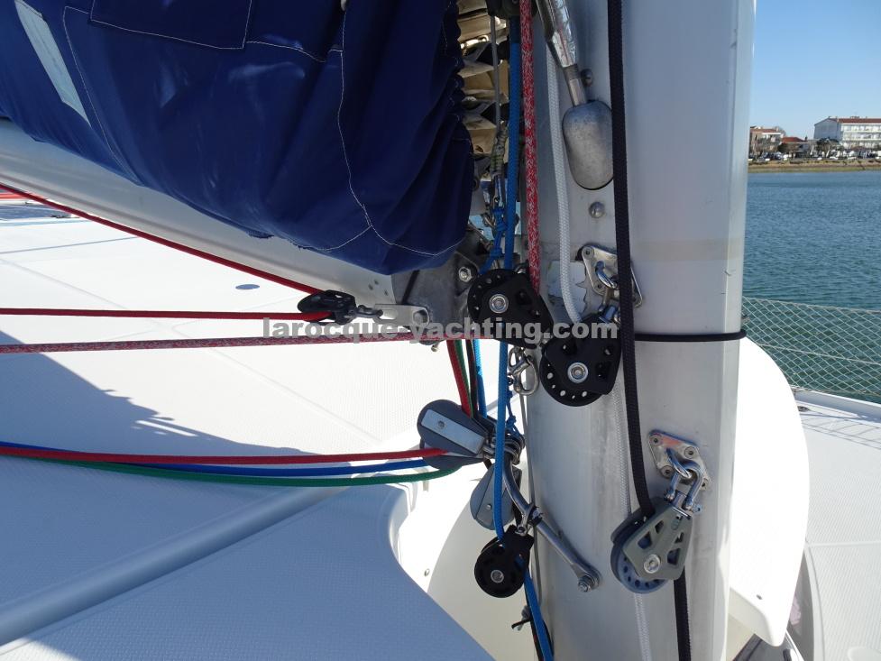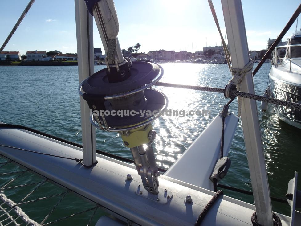 | Rail d'écoute de grand-voile | sur la casquette au dessus du cockpit |