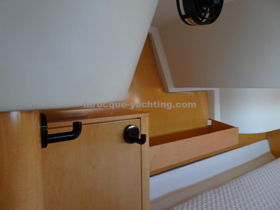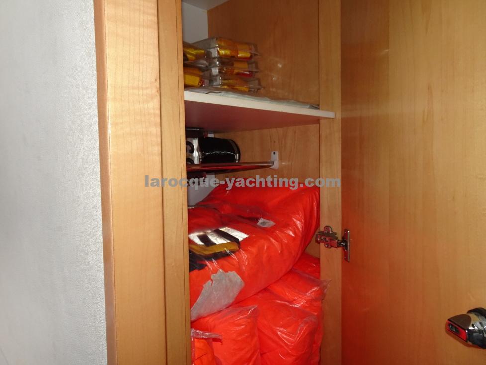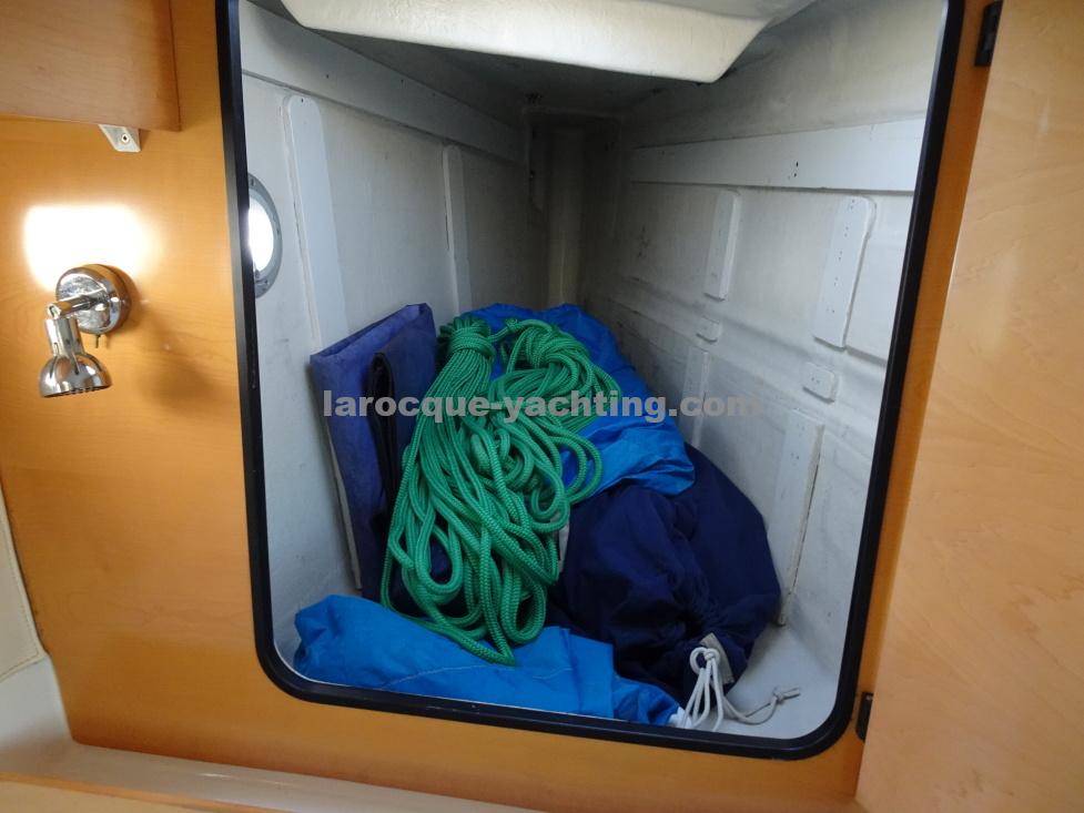 Le pic avant tribord est une soute à voile. Le pic avant bâbord est aménagé en cabine simple, vaigrages et coussinage.